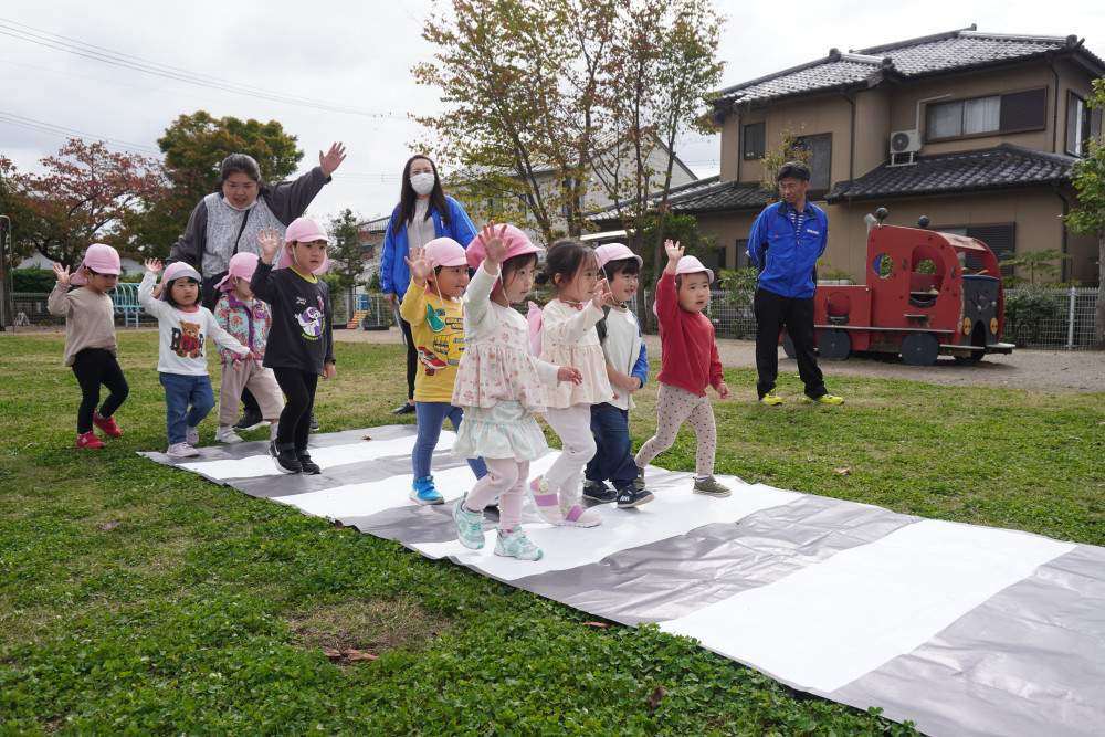 横断歩道が身近にあるぼだい樹の子どもたち。佐川急便の方から学んだことを家庭でも振り返っていただき、命を守るために正しい横断歩道の渡り方を身につけてほしいと思います。