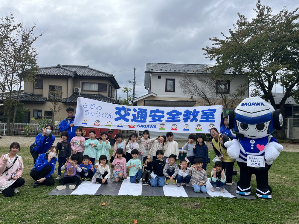 佐川急便の公式キャラクターの「こころくん」と横断歩道の渡り方や信号機の見方を楽しく学びました♪