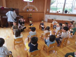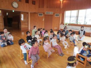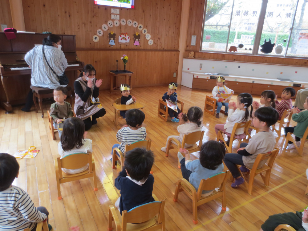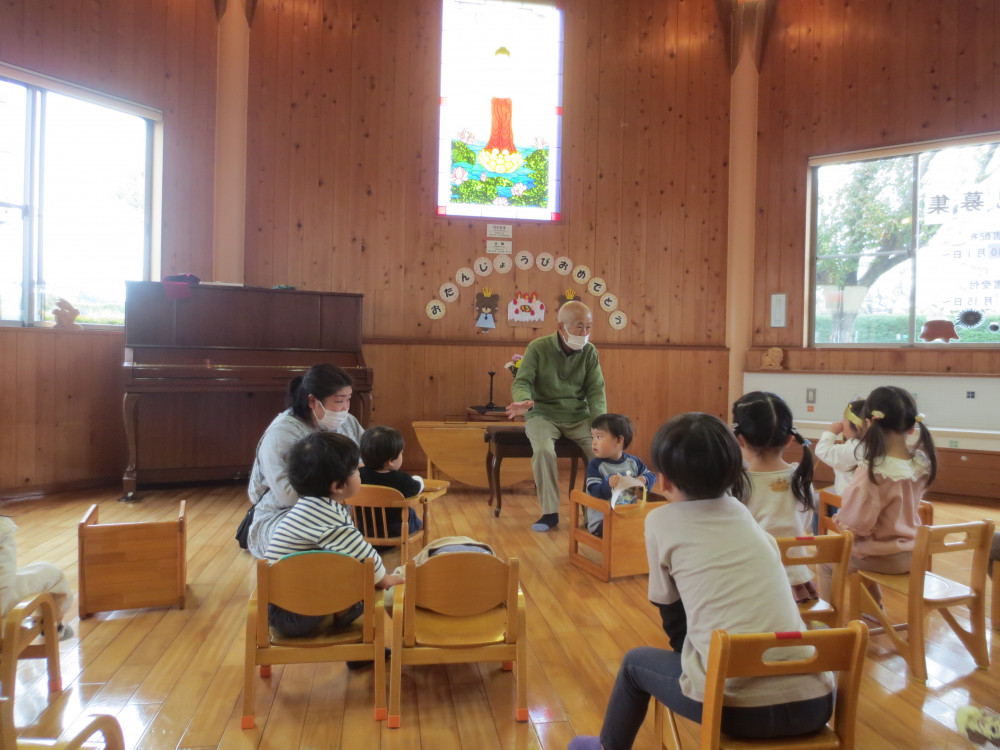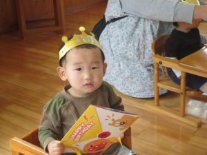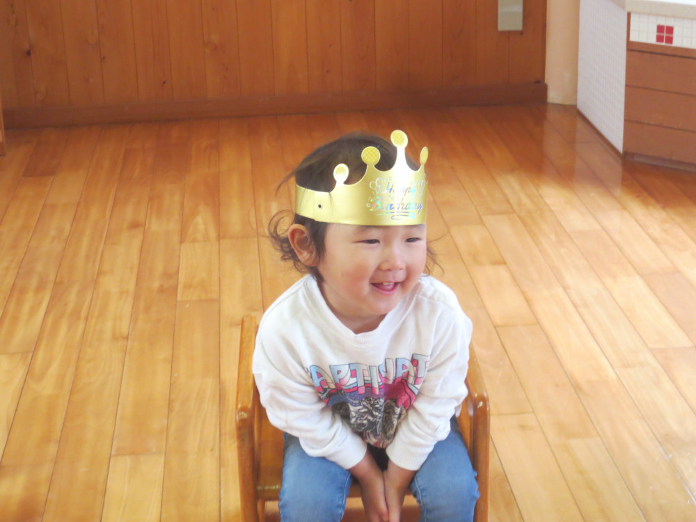 園長先生から誕生カードをもらったり、お祝いの歌を歌ったり、先生の出し物を見たりなど楽しい時間を過ごしました!