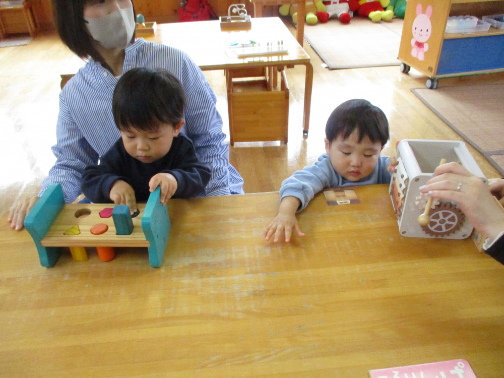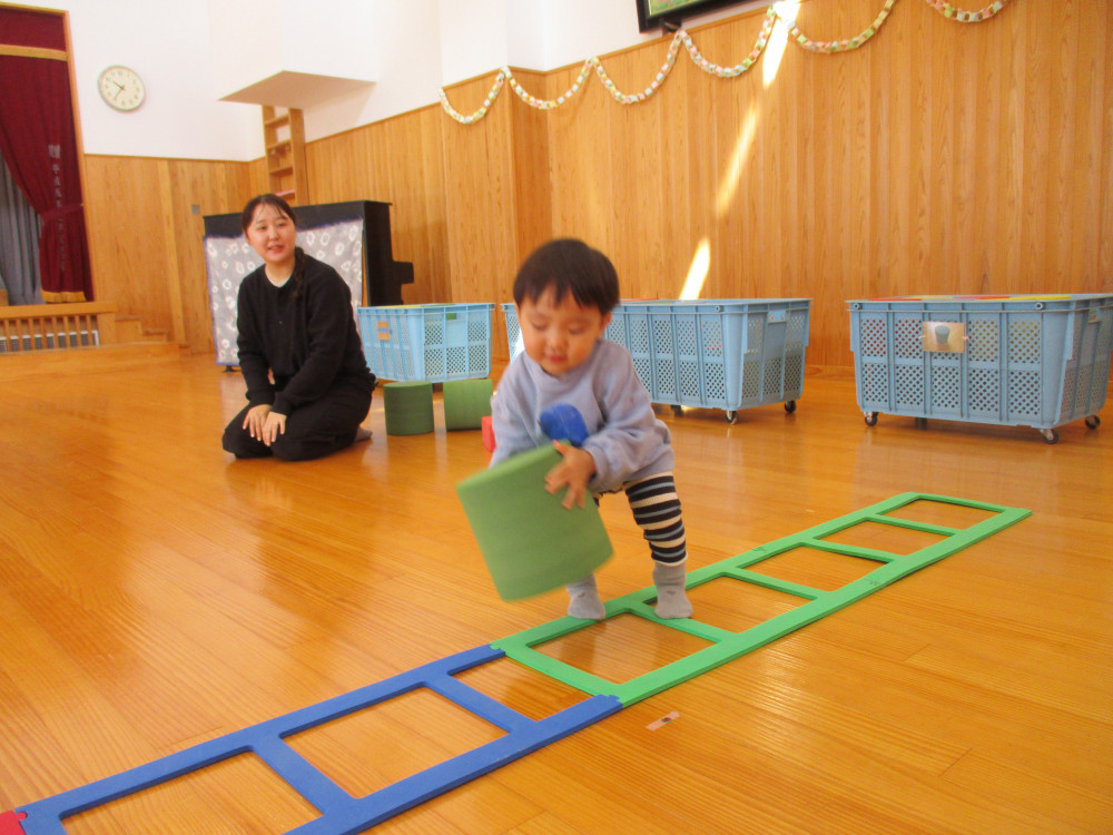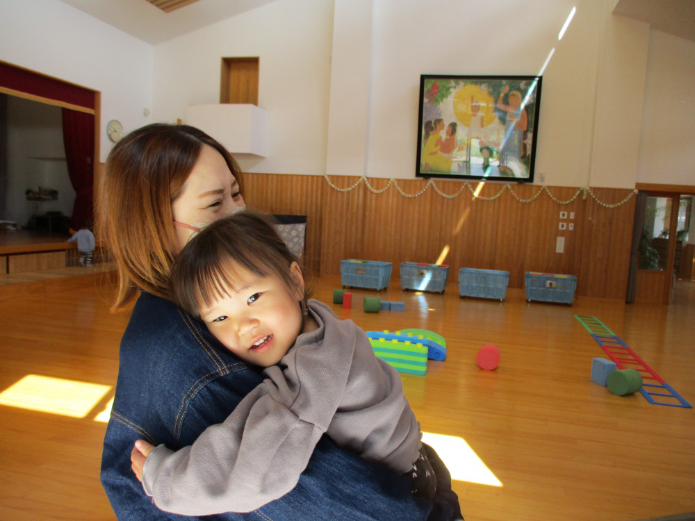 今日は子育て支援・にこにこ広場の開放日でした。気温は少し低めでしたが、園庭やホールで伸び伸びと体を動かして遊んでいた子ども達です♪