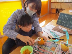 ぼだい樹恒例の「干し柿づくり」を親子で体験して頂きました![]()
