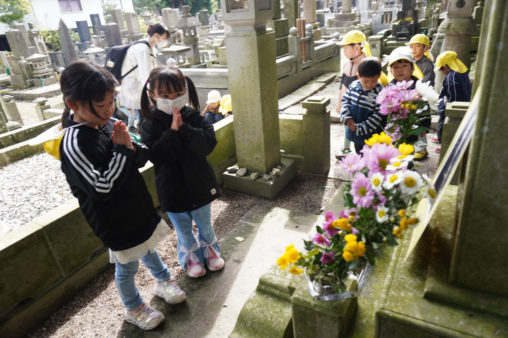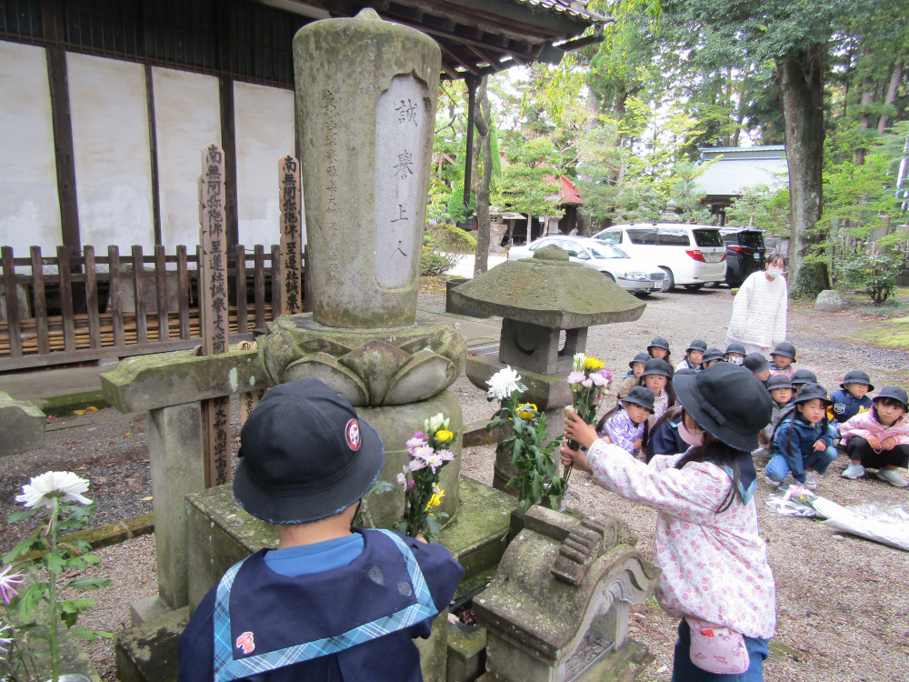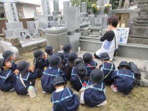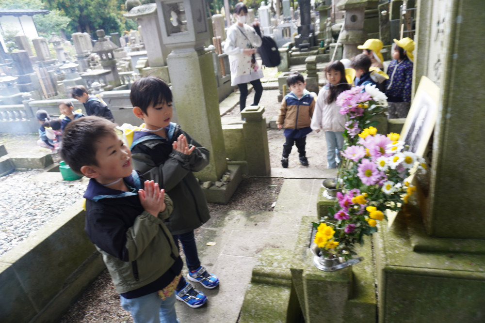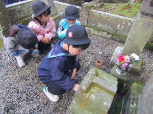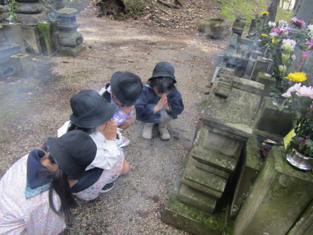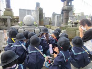 創立記念日に向けて、事前に子ども達と歴代の園長先生のお墓参りに行ってこれからも園を大切にしていくことを話し、手を合わせてきました。
