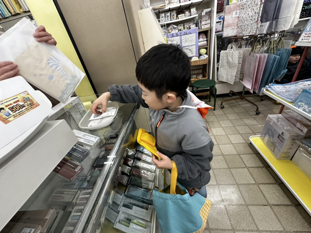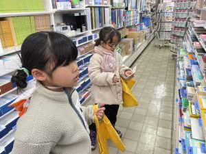 当日までお買い物ごっこをして楽しみにしていたお買い物体験。文房具を買いに大谷屋さんに行って来ました!