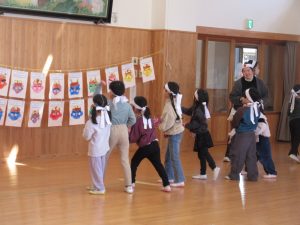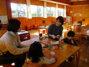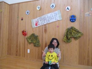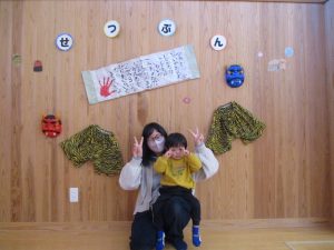 今年最後のにこにこ広場は2月3日節分にちなんで、園に通うお友達に交じって一緒に雰囲気を味わってもらいました✨