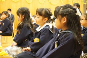 【園長先生・PTA会長さんのお話】園で聞く最後のお話に耳を傾けました。