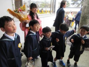 【最後のお見送り】先生方に見送られ、満面の笑みで園を巣立っていきました。