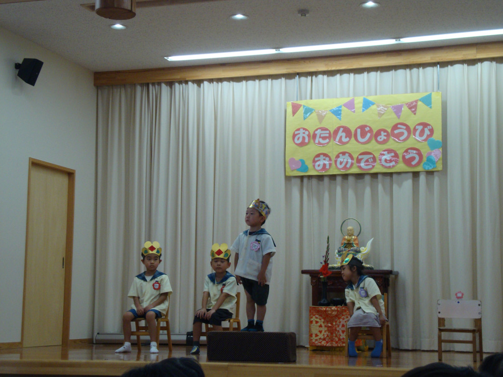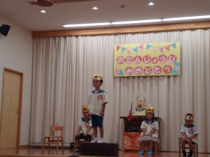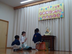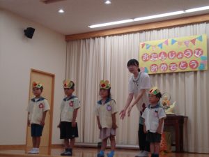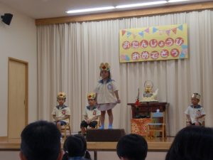 誕生児の子ども達は緊張しながらも、お友達や先生達、お母さん・お父さんに見守られながら誕生会に参加しました