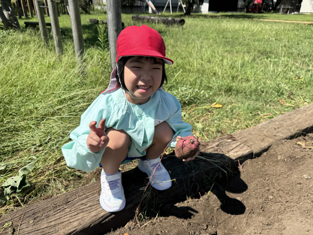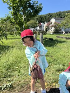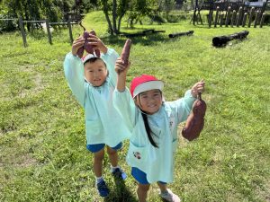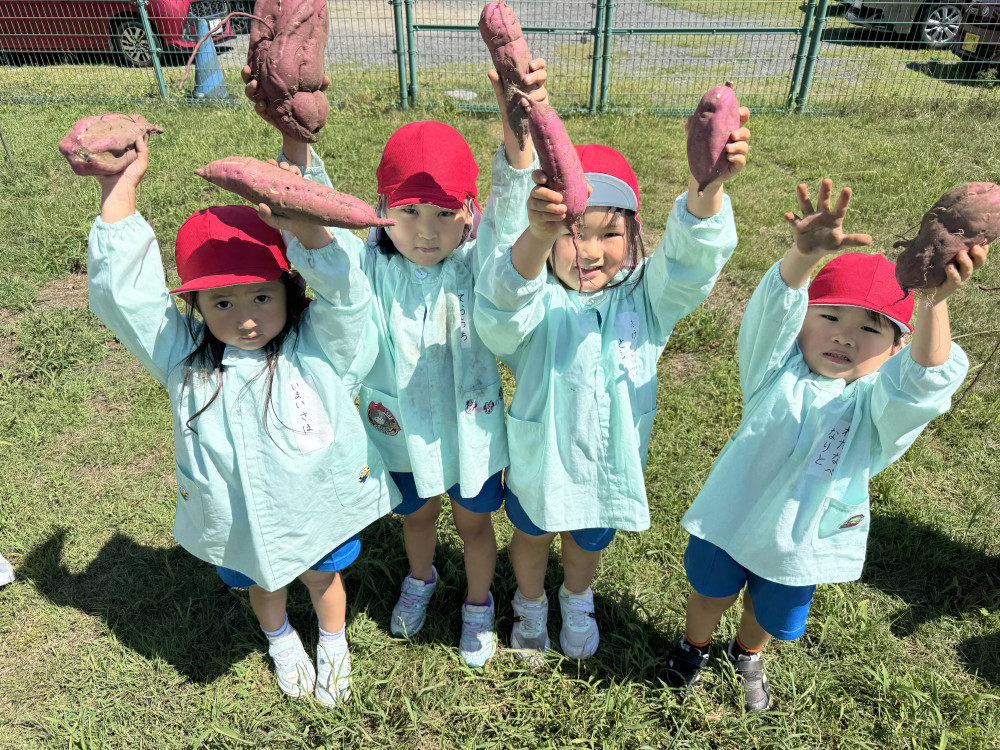 さつまいもの苗から大きくなるように、いっぱいお水をあげたり雑草を取ったりと頑張ってきたふじ組さん子ども達は毎日大きくなっているさつまいもみて、「まだかなあ・・」と収穫する日を心待ちにしていました