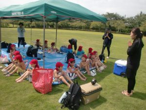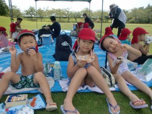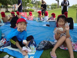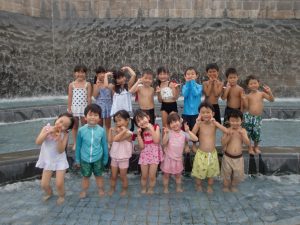 先日、年長組の行事の”夏保育”が行われましたお休みの子はおらず、16名全員で参加する事ができました