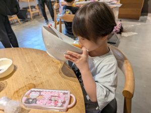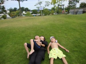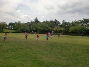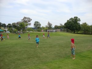 ご飯を食べた後は少し休憩をしてから、芝生の上で鬼ごっこをしたり寝転がったり、自由に楽しい時間を過ごしました