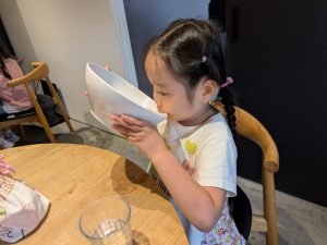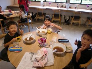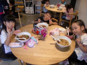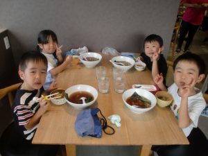 白河ラーメンは”しょうゆ味”で”ちぢれ面”だと勉強してきた子ども達、とても美味しくてスープまで完食する子もいました