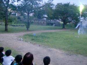 さくらの木に戻ると、いよいよクライマックスの花火です打ち上げ花火、とっても綺麗だったね