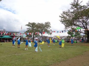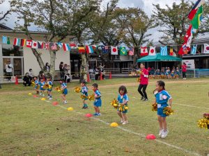 歌に合わせて、フラッグの旗を使ってダンスをしました
