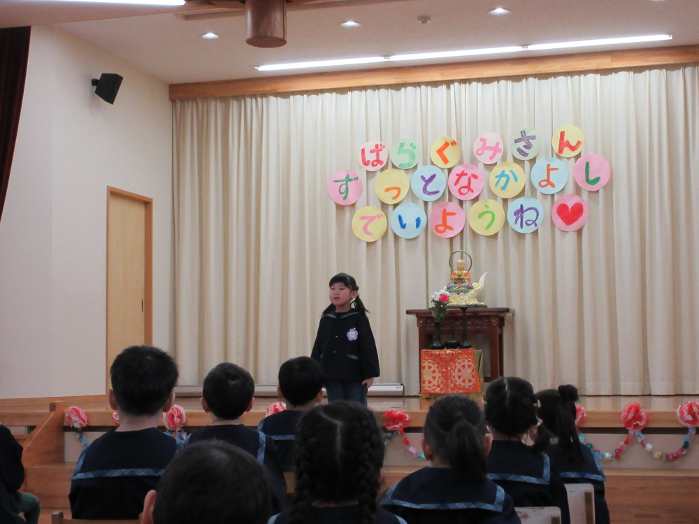 もう少しで卒園していくばら組さんに向けて、先生達とPTA役員の保護者の方からメッセージをいただきましたたくさんの優しい言葉に、ばら組さんだけでなく会場みんなの心が温かくなりました