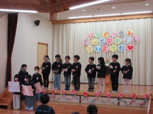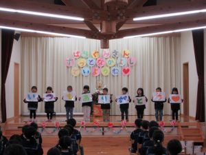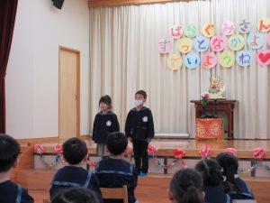 そして、今回初めてふじ組が司会を行いましたさくら組もふじ組も出し物の練習を頑張って当日は大きな声で発表する姿が見られました