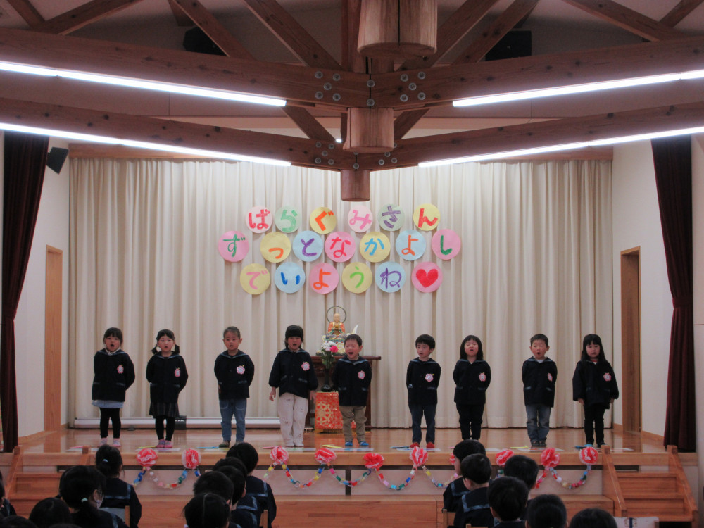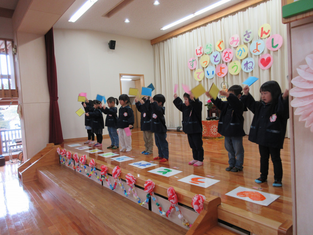 ばら組さん覚えている?のクイズを行いましたその後、ありがとうの花ばら組バージョンを歌いました緊張をしながらも頑張る姿がとってもかっこよかったです